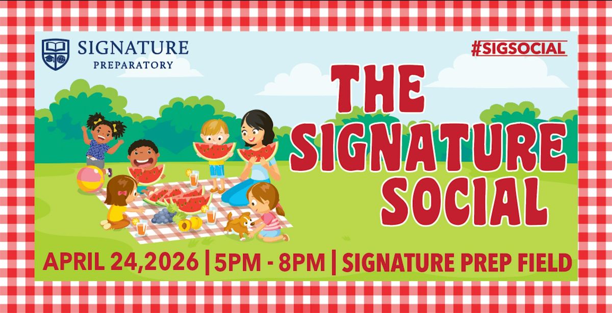Welcome to The Signature Social 2026! Join us at Signature Preparatory for an exciting event filled with fun activities, great food, and awesome company. This is your chance to meet our amazing teachers and staff, eat & play, and make new friends.