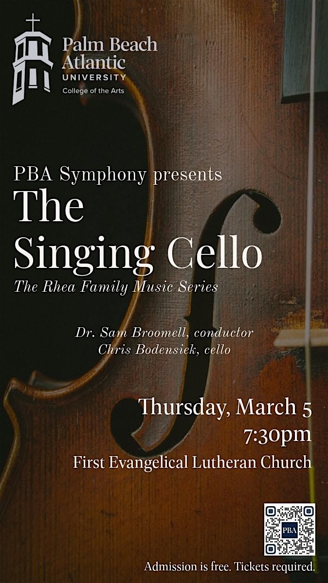 The PBA Symphony showcases rising student soloist Chris Bodensiek in Schumann’s beloved Cello Concerto, celebrated for its lyricism and intimate interplay between soloist and ensemble. Complementary orchestral works complete the program, framing the concerto’s emotional heart.