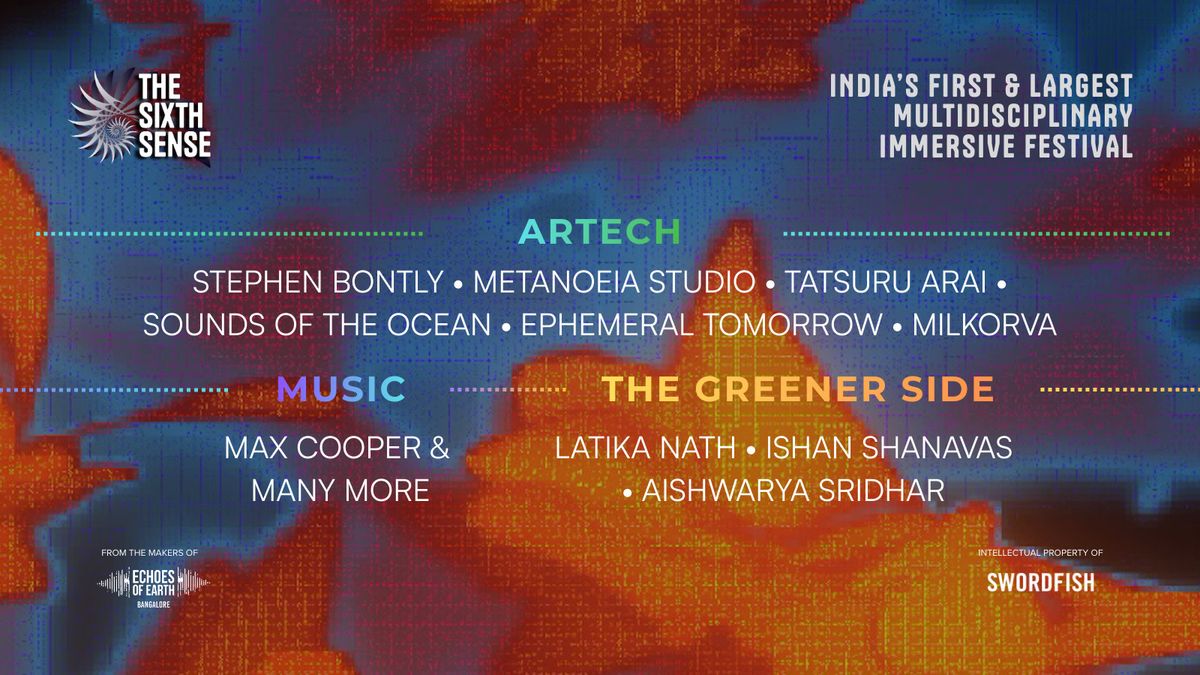 The Sixth Sense is India’s first and largest multidisciplinary immersive festival — a convergence of art, technology, music, nature, and community. Over 200,000+ sq. ft. industrial space is transformed into a “nucleus of discovery”, hosting immersive Artech showcases, waste-to-art installations, spatial sound & music performances, interactive exhibitions, and educational workshops.Audiences are invited to explore new-media art, spatial audio experiences, live performances, and immersive environments that fuse technology, nature, and creativity — redefining how people engage with art, sound and space.