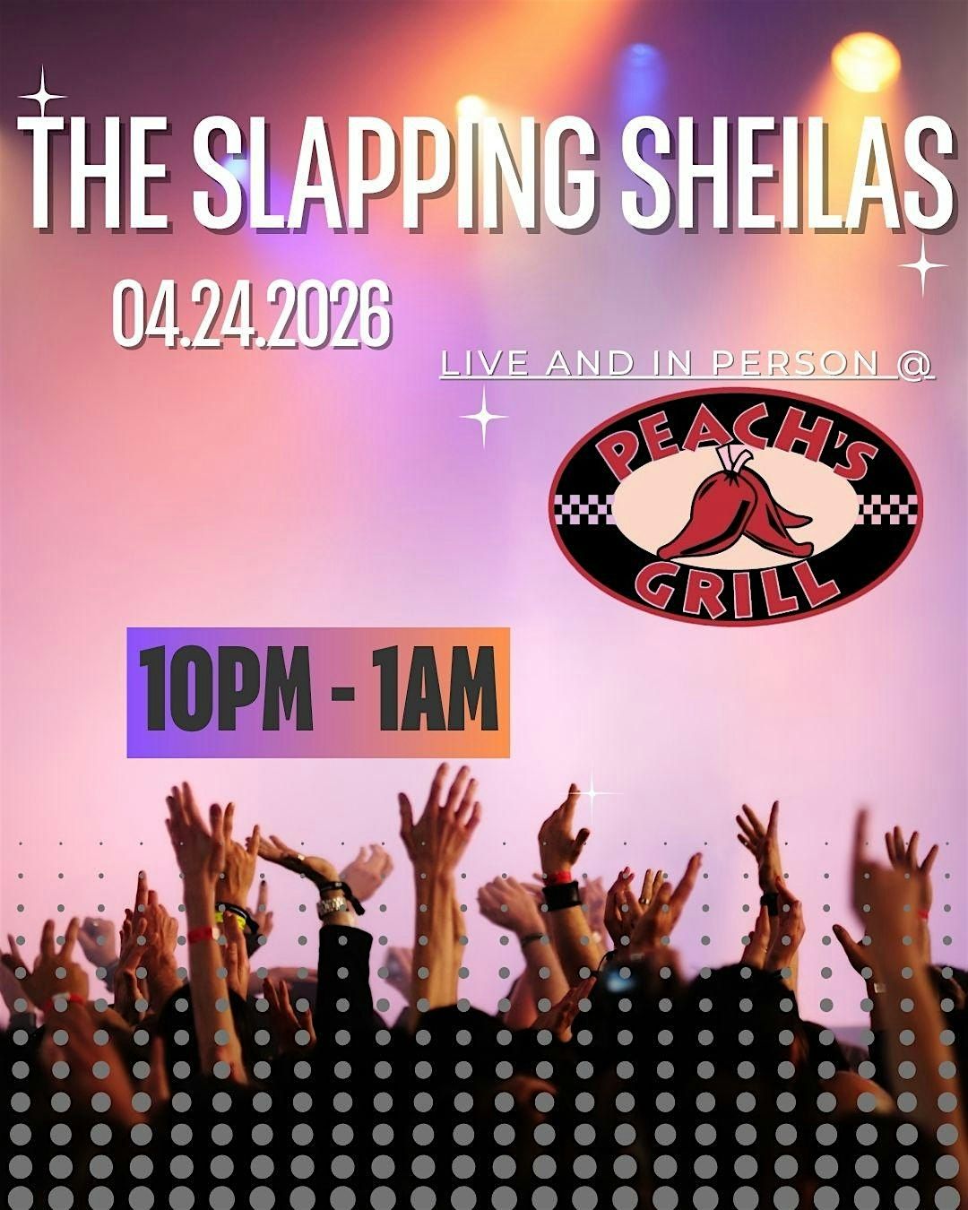 Live and in person, The Slapping Sheilas are bringing their debut performances to Peach's! grab friends and lets have a great time!!