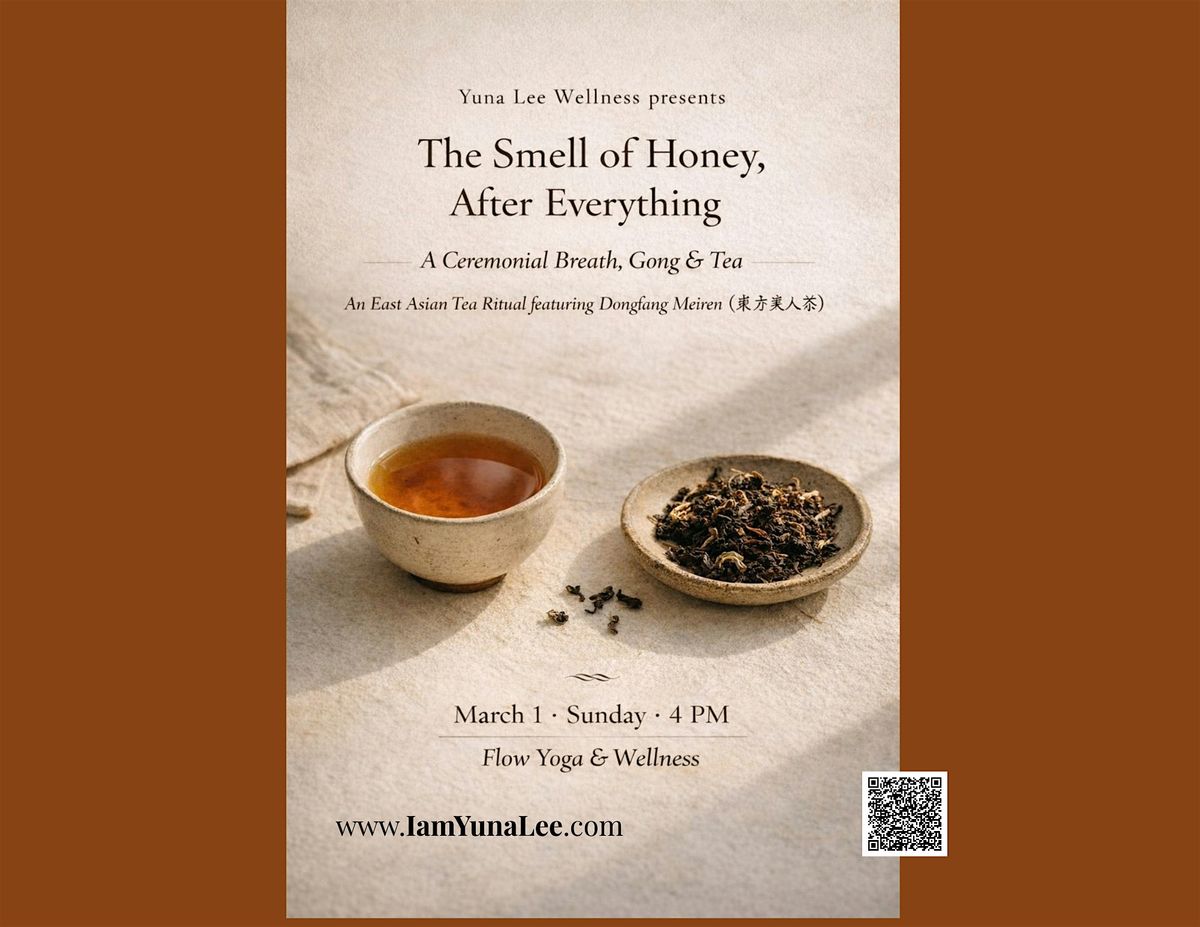 We begin with an East Asian tea ritual featuring Dongfang Meiren, a rare Taiwanese oolong grown in clean mountain environments and carefully hand-picked, prized for its naturally honeyed aroma and depth of flavor as well as its smooth, calming energy and lingering warmth.