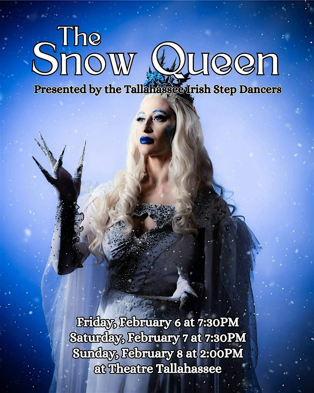The seventeenth production of "The Snow Queen" from the Tallahassee Irish Step Dancers brings a timeless fairy tale to life through Irish dance. Choreographed by David Jones, the story follows brave lass Colleen as she sets out from her village to rescue her true love, Patrick, from the clutches of the Snow Queen. She meets many characters on her journey - including the flippant Spring Queen, the graceful Summer Queen, and the cruel Fall Queen. But Colleen must draw on all her strength if she is to defeat the fearsome Snow Queen and live happily ever after. Share this Tallahassee tradition with the whole family!