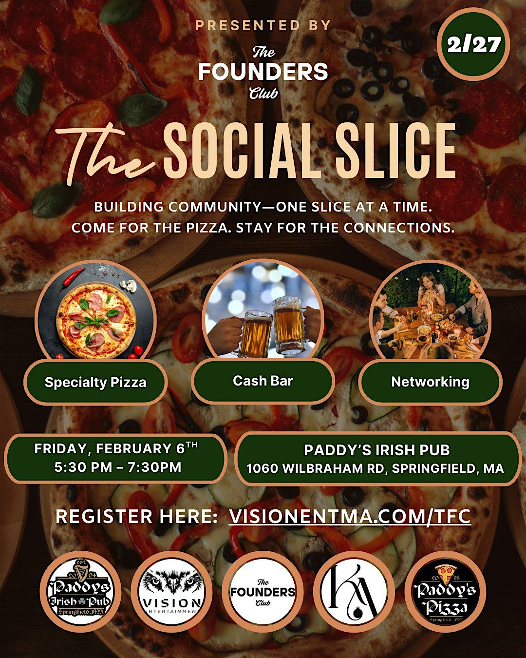 Join us for The Social Slice — a laid-back networking mixer for creatives, founders, entrepreneurs, and go-getters. We’re kicking things off at Paddy’s Pub with pizza, drinks, and the kind of networking that actually feels good.