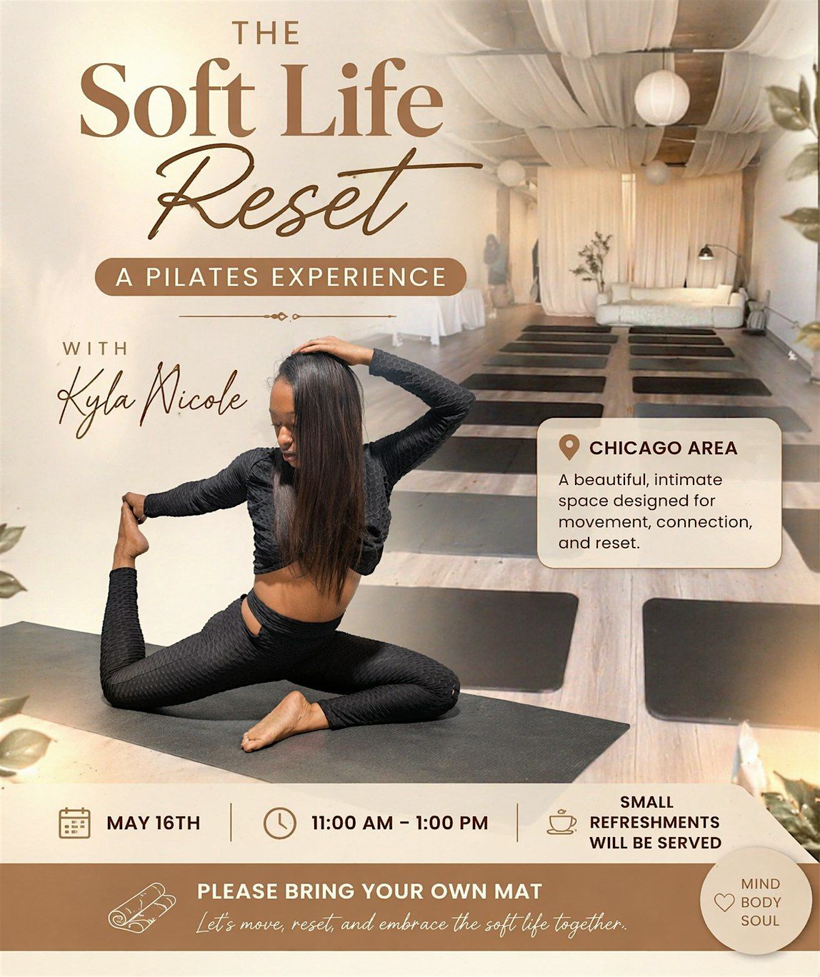 The Soft Life Reset: A Pilates Experience is more than just a workout—it’s a moment to slow down & reconnect