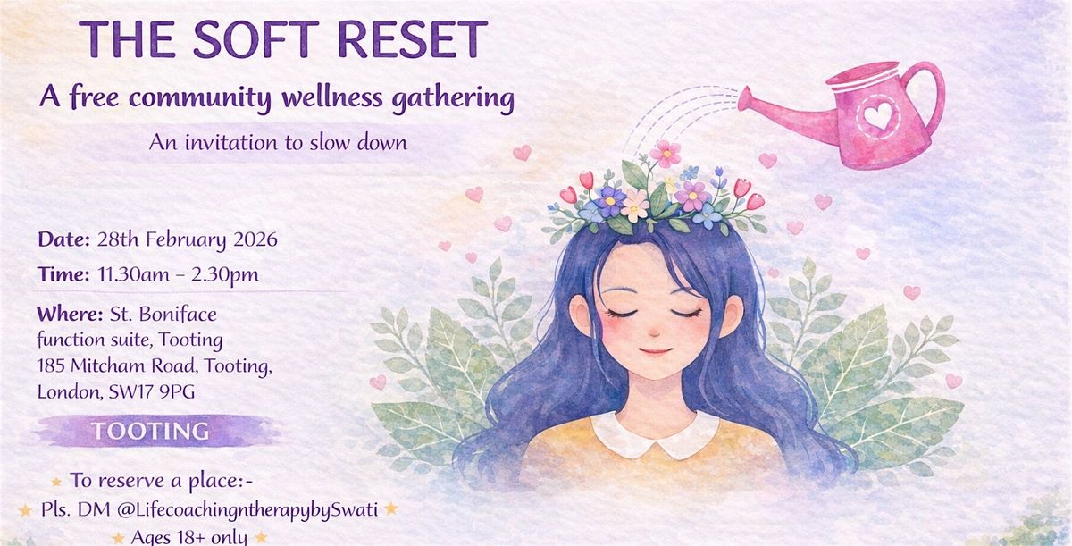 The Soft Reset is a free community wellness gathering in Tooting — a gentle afternoon to slow down, rest, and reconnect.