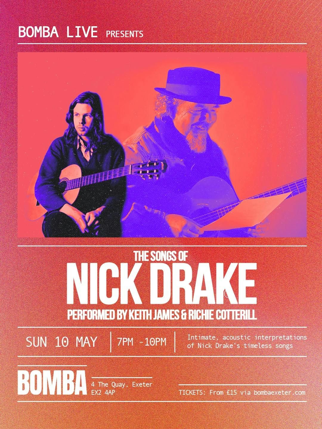 On Sunday 10th May, Bomba hosts an evening dedicated to the songs of Nick Drake - a songwriter whose work has only grown in weight and meaning with time.Recorded between 1969 and 1972, his music is subtle, intimate and deeply human, built on intricate guitar playing and lyrics that sit with you long after the final note.