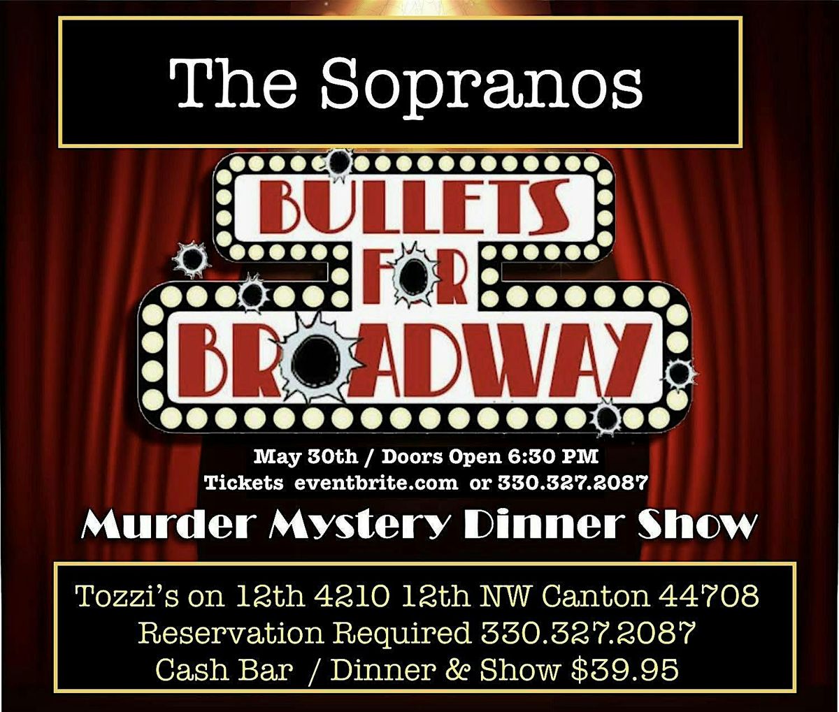Welcome to the show! Join us at Tozzi's On 12th for a night of mystery, intrigue, and maybe a little mayhem. Immerse yourself in the world of the Soprano crime family as you try to solve a thrilling M**der mystery. Put on your detective hat and get ready for an evening filled with twists and turns. Who will be the culprit? Who can you trust? Come find out at this exciting in-person event!