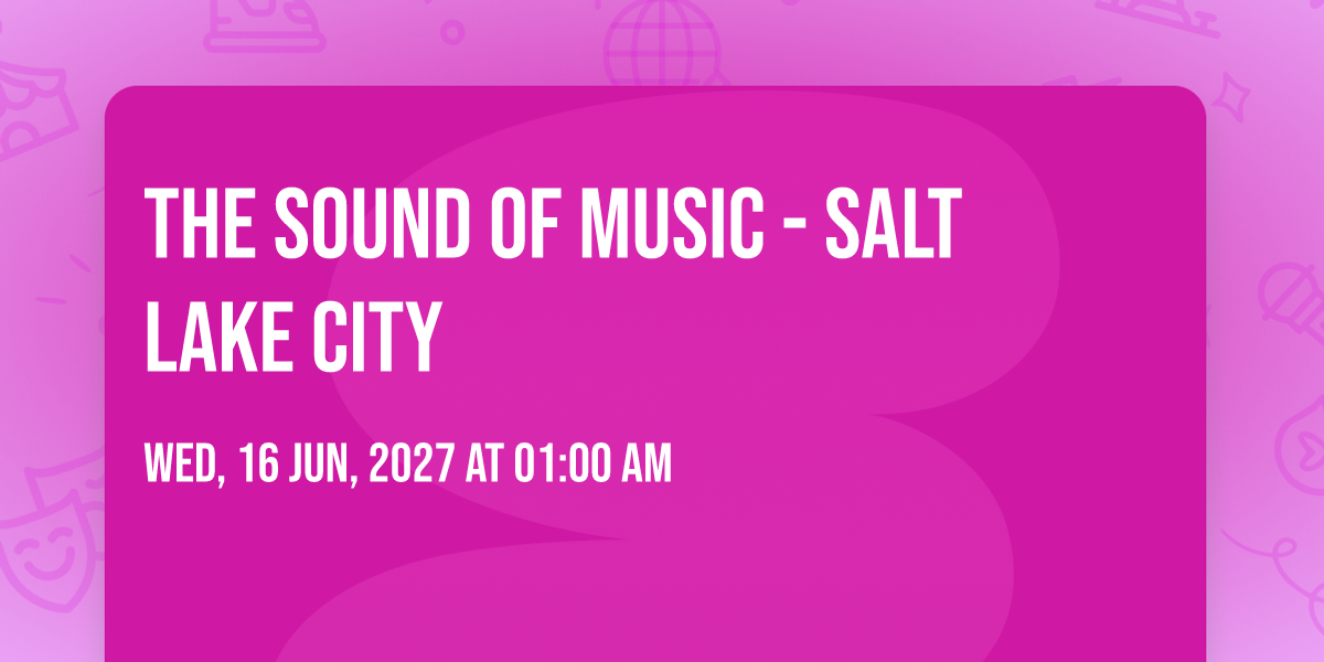 📍 Location: 40.7665, -111.891🌟 Step into a world of wonder at The Sound of Music - Salt Lake City, where extraordinary moments await! 🏛️ Located at Eccles Theater in dynamic Salt Lake City, UT, this event will become the talk of the town. 📅 Join us on June 21st, 2027 at 12:30 AM for a celebration that defies the ordinary. ✨ This curated experience brings together the best of entertainment, culture, and community spirit. Every detail has been thoughtfully planned to ensure an unforgettable experience for all our guests. 🎯 Take advantage of this opportunity to be part of something special. 🎊 Early registration is recommended as space is limited!