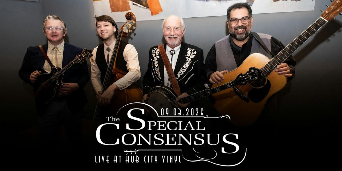 Special Consensus’ sound is grounded in a deep appreciation and understanding of bluegrass music, incorporating both the drive and harmonies of the traditional sound with the more contemporary sounds and repertoire of today. With the foundation of Greg’s unique banjo playing style and the vocal prowess of the 2023 and 2025 IBMA Male Vocalist of the Year Greg Blake (guitar), Brian McCarty (mandolin), and Nico Humby, these musicians effortlessly support each other and consistently maintain their bluegrass center whether they’re playing a jazz-tinged instrumental or a song from any of their award-winning recordings. These four talented vocalists and instrumentalists follow their creative desires without straying too far from their roots.