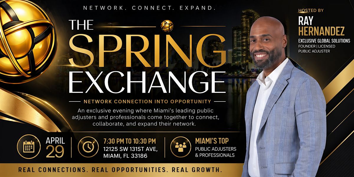 Join us for The Spring Exchange, an exclusive evening bringing together Miami’s leading public adjusters, entrepreneurs, and professionals for high-level networking and real business opportunities.