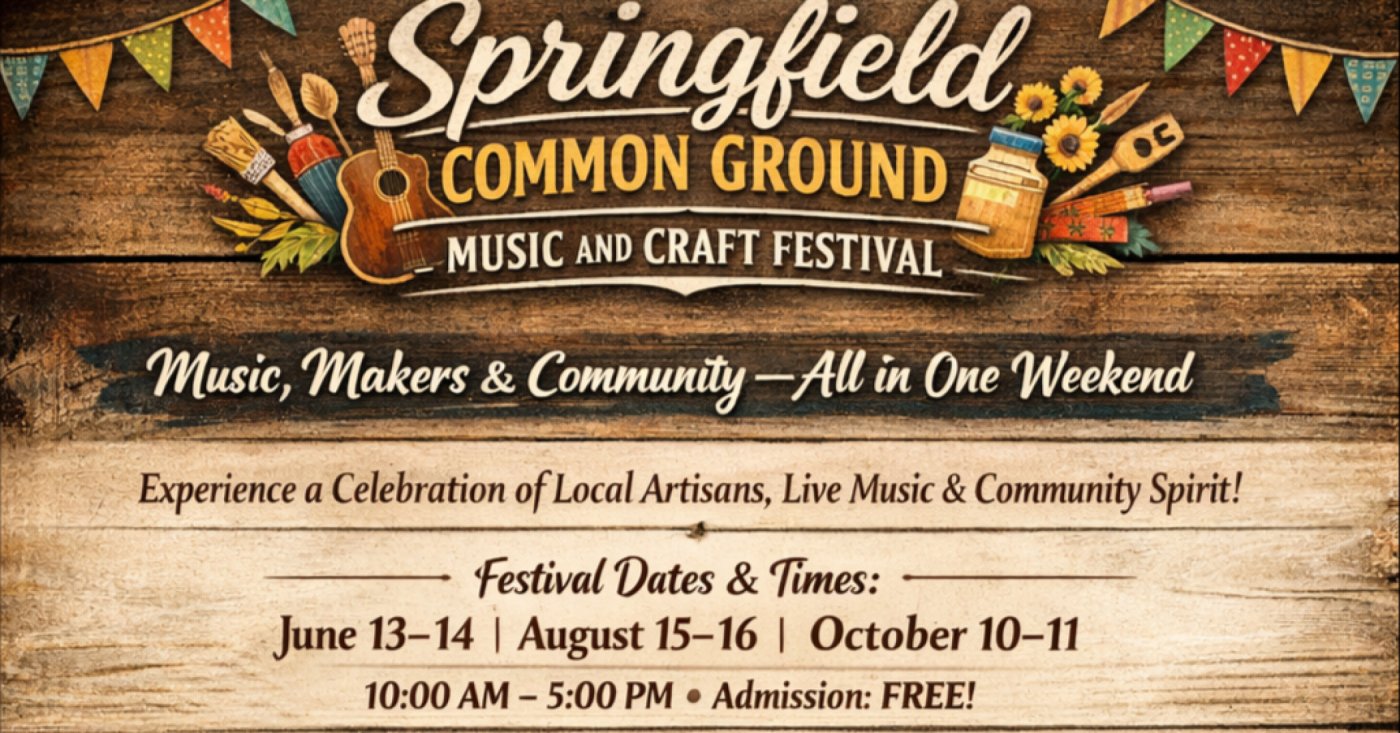 Be part of an unforgettable experience where music, creativity, and community come together in a lively and inspiring setting. The Springfield Common Ground Music and Craft Festival is more than just an event—it’s a place to connect, discover, and celebrate local talent.
