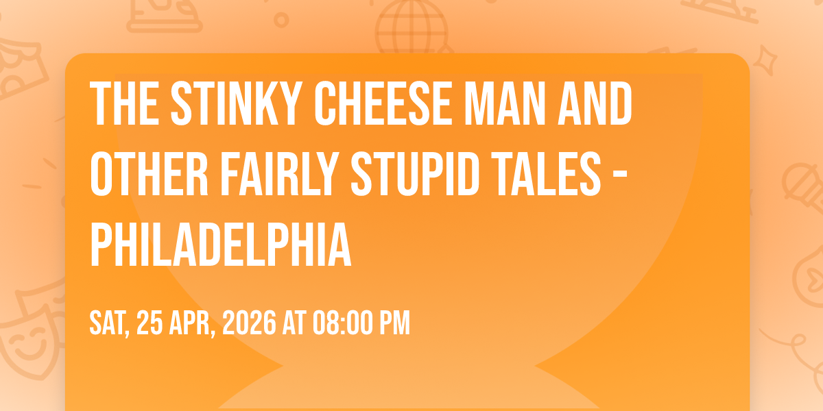 π Location: 39.9523, -75.1638π Prepare to be amazed at The Stinky Cheese Man and Other Fairly Stupid Tales - Philadelphia, the most anticipated gathering of the season! π Set against the stunning backdrop of The Arcadia Stage At Arden Theatre Company in vibrant Philadelphia, PA, this event promises to redefine your expectations. π Mark your calendars for May 31st, 2026 at 08:00 PM and get ready to immerse yourself in an atmosphere of wonder and excitement. β¨ From the moment you arrive, you'll be transported into a world where memories are made and stories come alive. They have crafted an experience that perfectly harmonizes entertainment, innovation, and community spirit. π Join us as we create moments that will be discussed for years!