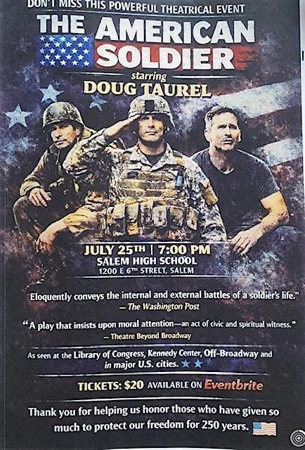 This production tells the story of the American soldier through fourteen characters based on real people, actual letter, and true experiences spanning from the American Revolution to present day. The play captures the discipline, teamwork, and brotherhood of military service while also examining the internal struggles soldiers face when returning home. Audiences meet a Revolutionary War soldier freezing at Valley Forge, a WW11 veteran haunted by Iwo Jima, a grieving Vietnam-era mother, an Iraq veteran struggling to adjust to civilian life, a family coping with repeated deployments and many others. Together these stories present a moving tribute to sacrifice, service and survival.