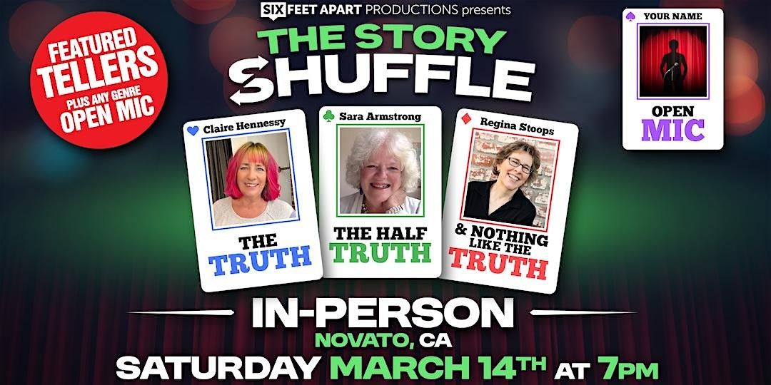 Join us for storytelling in Novato! We’ll feature three storytellers, followed by an Open Mic segment. You can either sign up to tell a 5-minute story or a 1-minute story in our Story Sprint lighting round. Your story can be ANY GENRE! A true, personal story, a tall tale, a braided tale, a myth, a folktale, a fractured fairy tale, etc. No theme, sign up at the door. Regardless of the genre, your story should follow a narrative format (beginning, middle, end) and be told without notes—no reading!