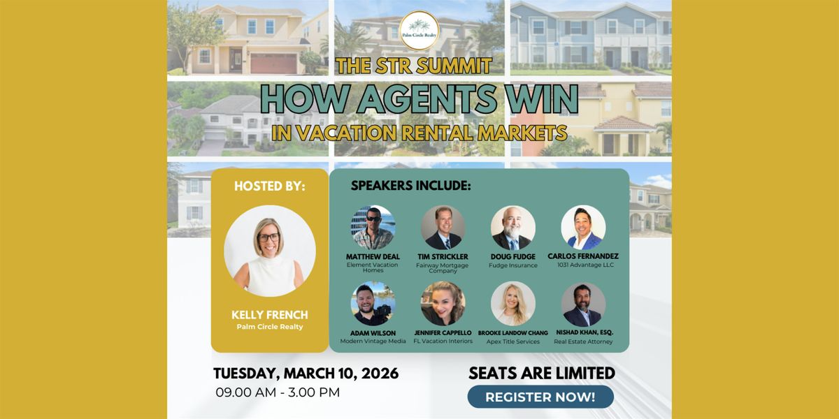 Join us on Tuesday, March 10th from 9am-3pm (location TBD- in Kissimmee/Davenport). Lunch will be served. This full-day, in-person training is designed for real estate agents who want to confidently sell short-term rental properties, attract investor clients, and stand out in vacation rental markets. Youβll learn how to evaluate STR deals, understand what investors actually care about, navigate common pitfalls, and speak with clarity and authority. This is not a webinar. Itβs an immersive, practical experience with real-world strategies you can apply immediately. Space is limited to keep the room intentional and high-impact. If you want to win in vacation rental markets, this is the room you need to be in.