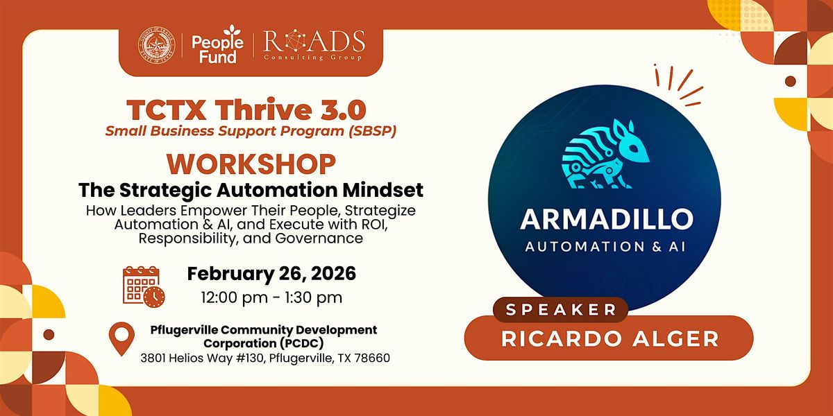 Join us for The Strategic Automation Mindset, a practical session focused on how leaders can approach Automation & AI with clarity, purpose, and real business impact. This workshop will help you think strategically about where automation fits, how to prioritize opportunities, and how to move from ideas to execution in a responsible way.