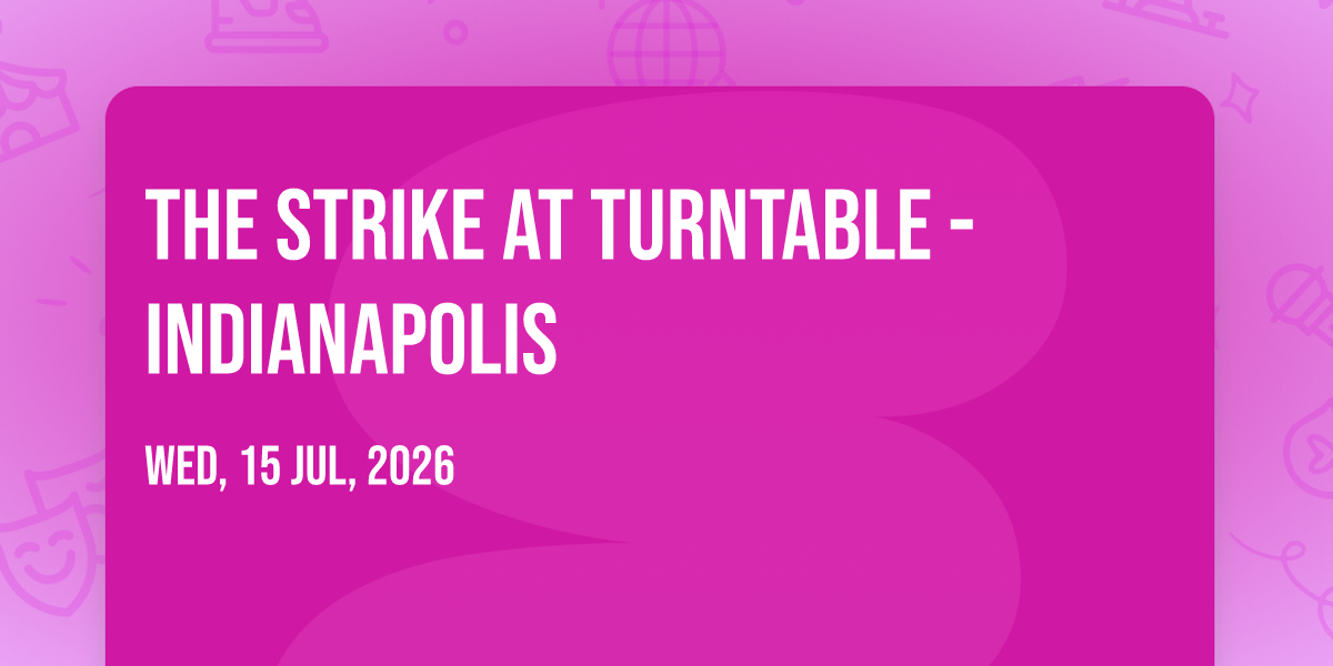 🌟 Step into a world of wonder at The Strike at Turntable - Indianapolis, where extraordinary moments await! 🏛️ Located at Turntable - Indianapolis in dynamic Indianapolis, IN, this event will become the talk of the town. 📅 Join us on July 15th, 2026 at 08:00 PM for a celebration that defies the ordinary. ✨ This curated experience brings together the best of entertainment, culture, and community spirit. Every detail has been thoughtfully planned to ensure an unforgettable experience for all our guests. 🎯 Take advantage of this opportunity to be part of something special. 🎊 Early registration is recommended as space is limited!