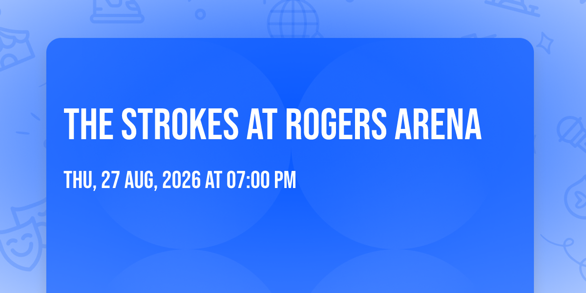 🎉 Welcome to The Strokes at Rogers Arena, where dreams come alive and possibilities are endless! 🏛️ Join us at Rogers Arena in the heart of Vancouver, BC for an event that defies expectations. 📅 On August 27th, 2026 at 07:00 PM, be part of something truly extraordinary as we bring together innovation, entertainment, and pure magic. ✨ Every aspect has been carefully designed to ensure an unforgettable experience for all our guests. Whether you're seeking adventure, inspiration, or simply a break from the ordinary, this event promises to deliver beyond your wildest dreams. 🎊 Prepare for a journey into the extraordinary!