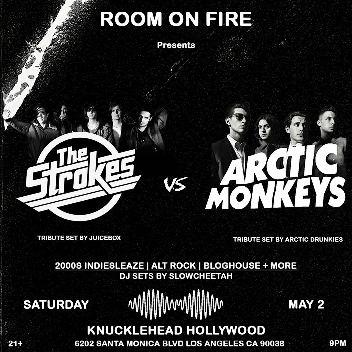 THE STROKES VS ARCTIC MONKEYS NITE⚡️MAY 2 🪩 BACK BY POPULAR DEMAND ⚠️ Drink and party in a packed house full of The Strokes / Arctic Monkeys fans. @juiceboxtribute / @Arcticdrunkies will be performing The Strokes / ARCTIC MONKEYS GREATEST HITS AND MORE ⚡️🎸