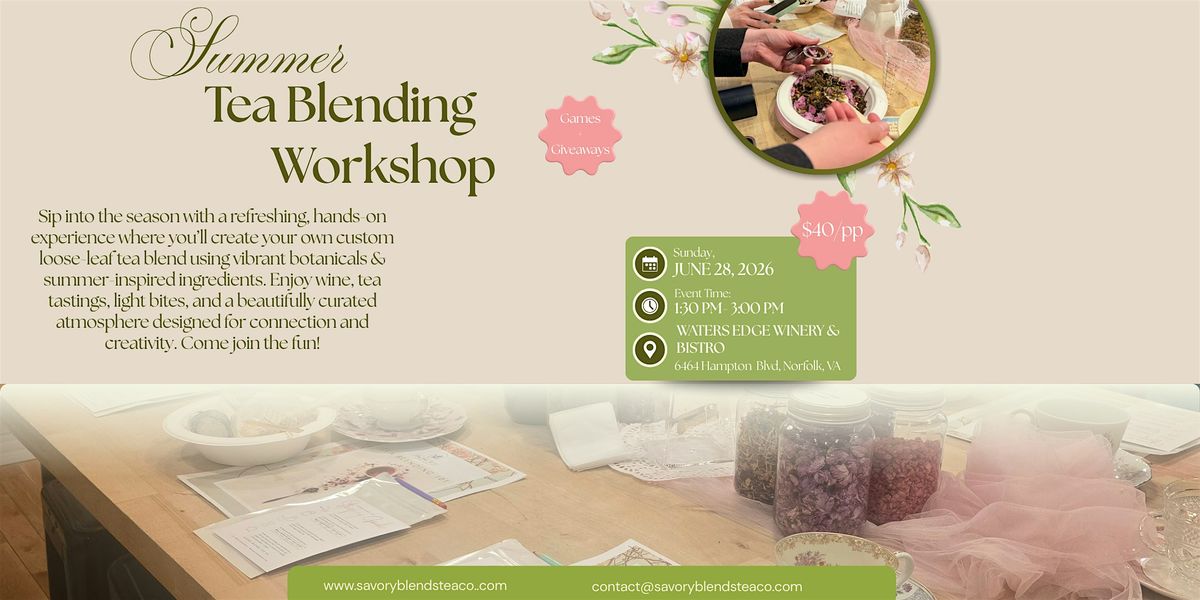 Join Savory Blends Tea Co. for a refreshing, hands-on tea blending workshop where you’ll explore vibrant, seasonal flavors and create your own custom loose-leaf tea blend to take home.