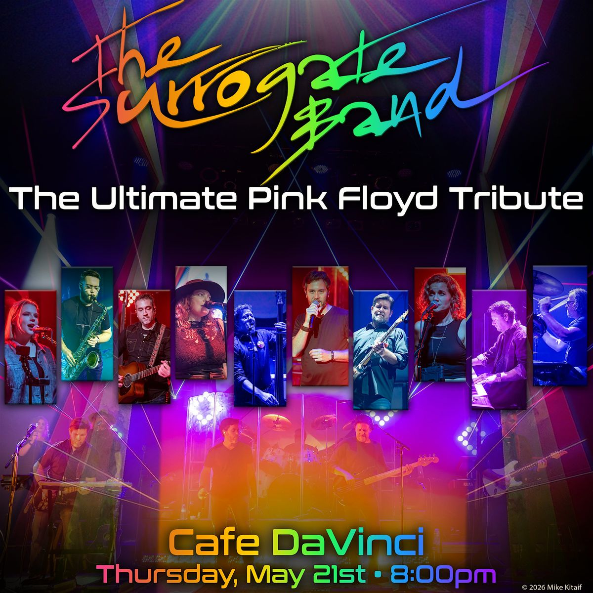 The Surrogate Band, from DeLand, FL, is a well-regarded tribute act to Pink Floyd, often praised by local crowds as "spectacular" and "the closest experience to the real thing." Since 2016, they have been known for their annual performances at the Athens Theatre, and now their taking the show Cafe DaVinci's stage!