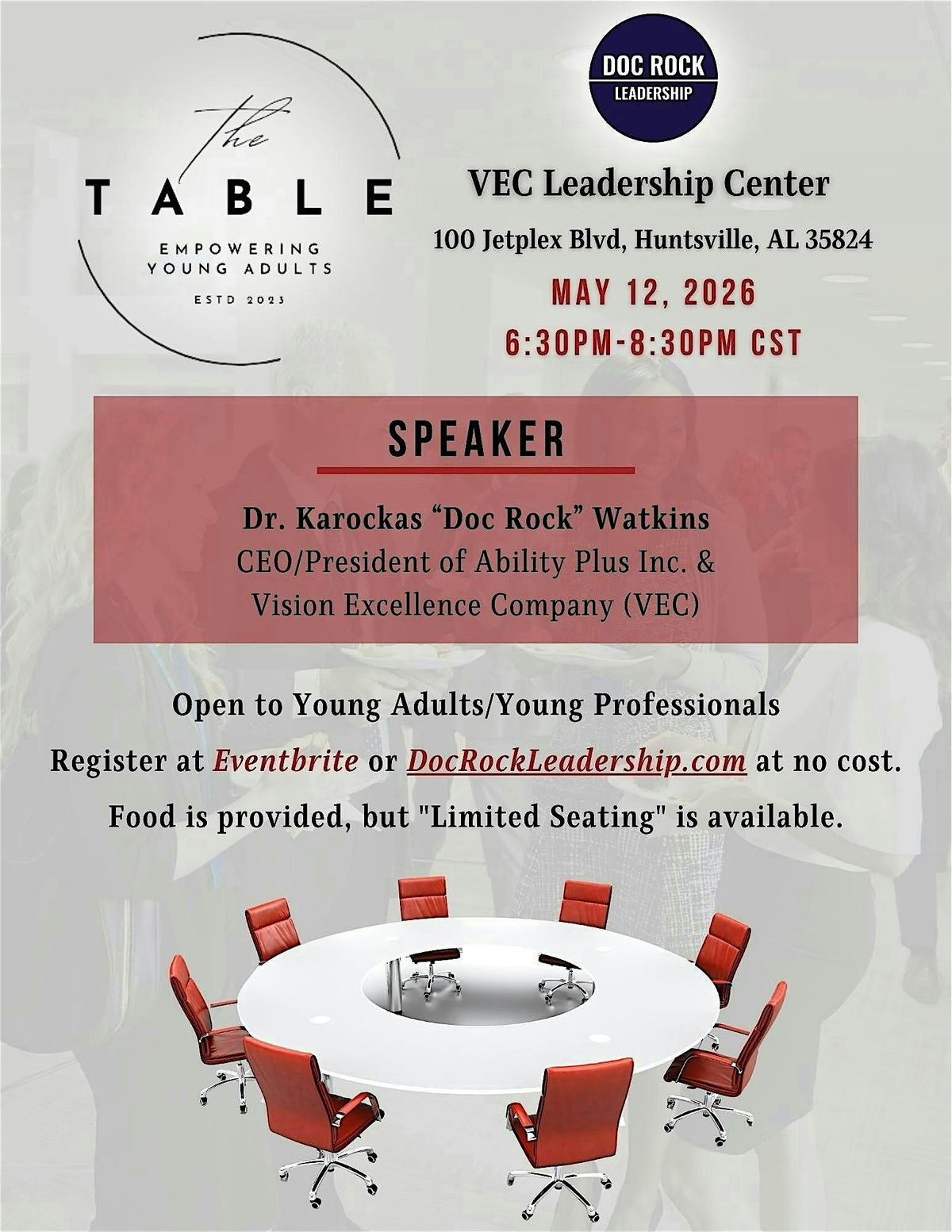 Hosted at the VEC Leadership Center, this dynamic session will be led by Dr. Karockas “Doc Rock” Watkins, a nationally recognized leadership expert and CEO.