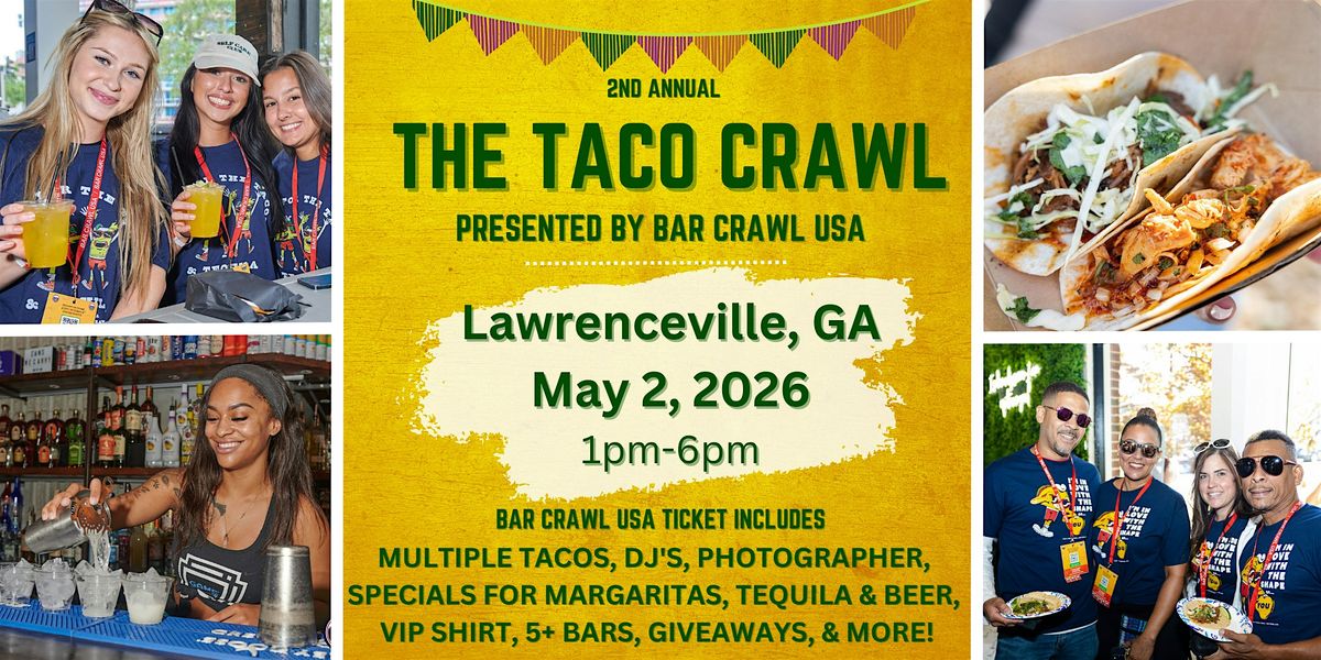 The Taco Crawl presented by Bar Crawl USA is coming to Downtown Lawrenceville on May 2nd. Enjoy eating tacos, sipping margaritas and dancing your taco loving butt off!