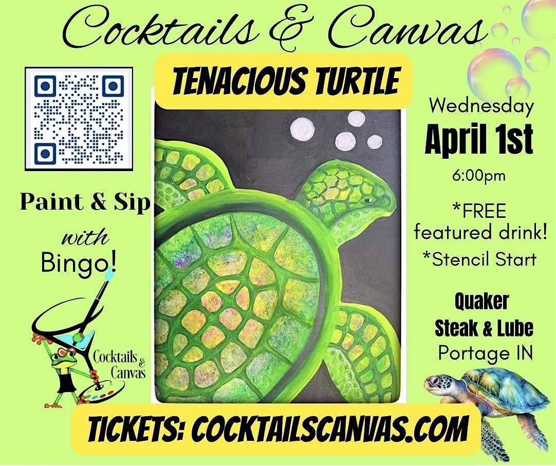 Enjoy a fun and abstract way of painting and creating this totally tenacious turtle! We will be using a stencil start to make painting this a breeze. A FREE featured drink as well as five rounds of Bingo will be included with your ticket purchase.