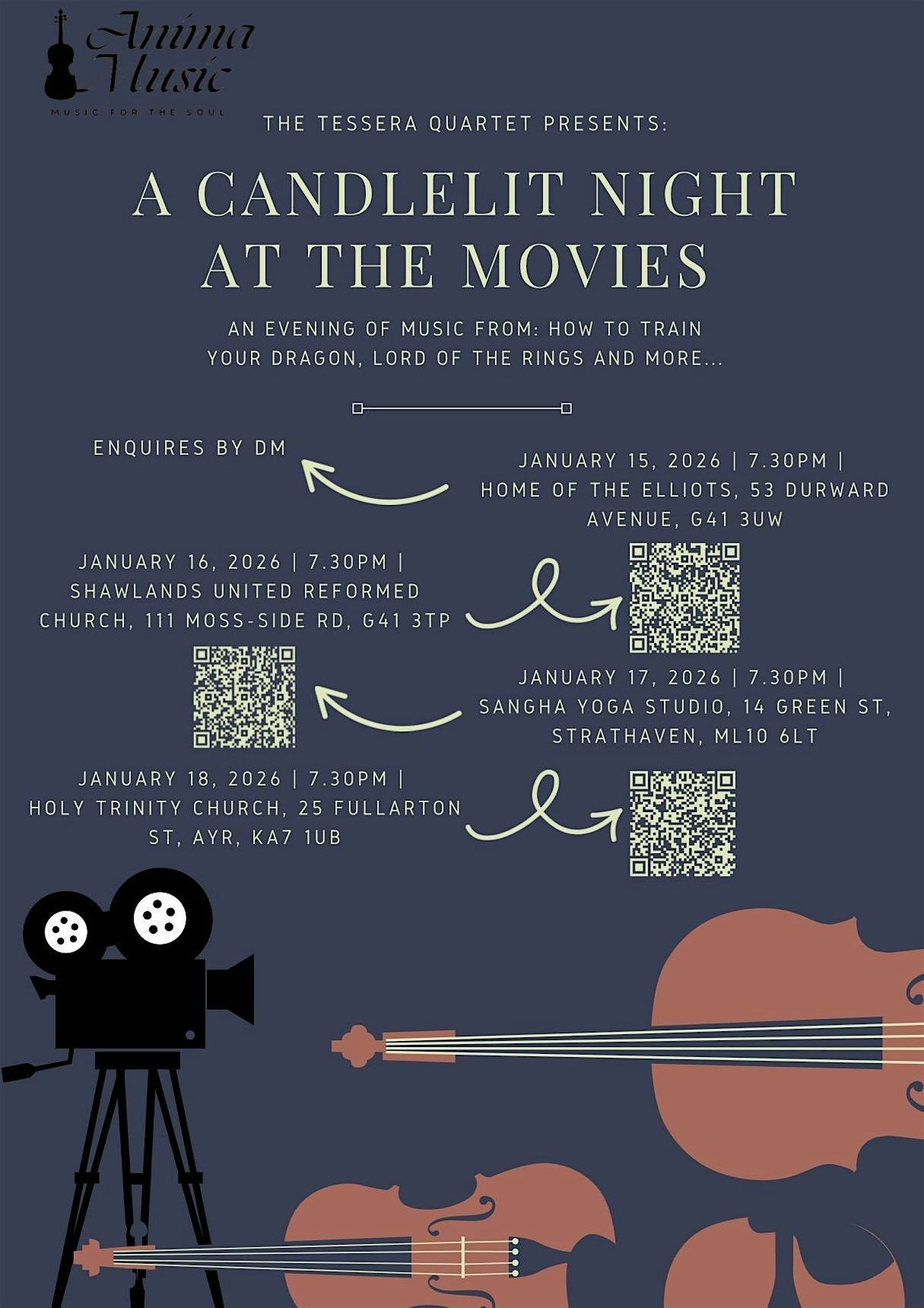 Join The Tessera Quartet for a Candlelit Night at the Movies! Featuring music from your favourite movies including How to Train your Dragon, Lord of the Rings and more...
