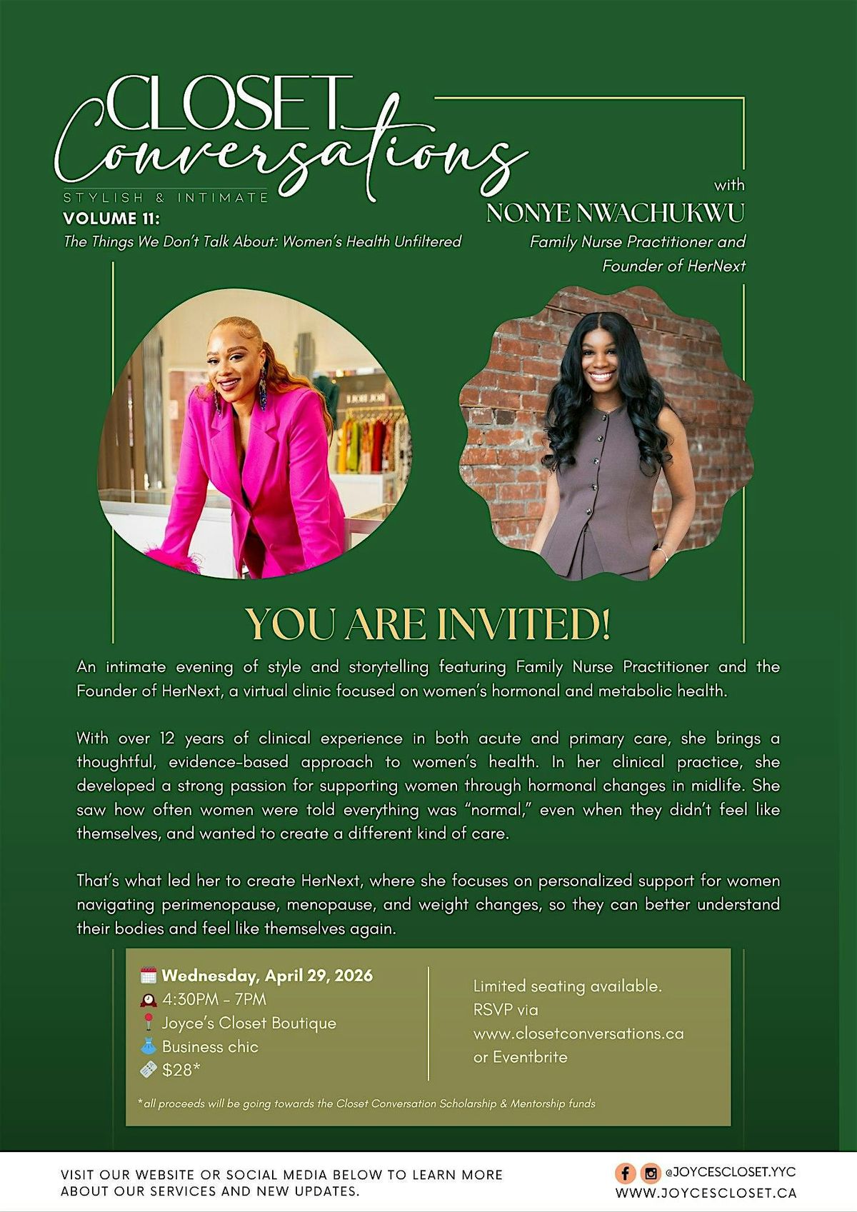 An intimate evening of style and storytelling featuring Family Nurse Practitioner and the Founder of HerNext, a virtual clinic focused on women’s hormonal and metabolic health.