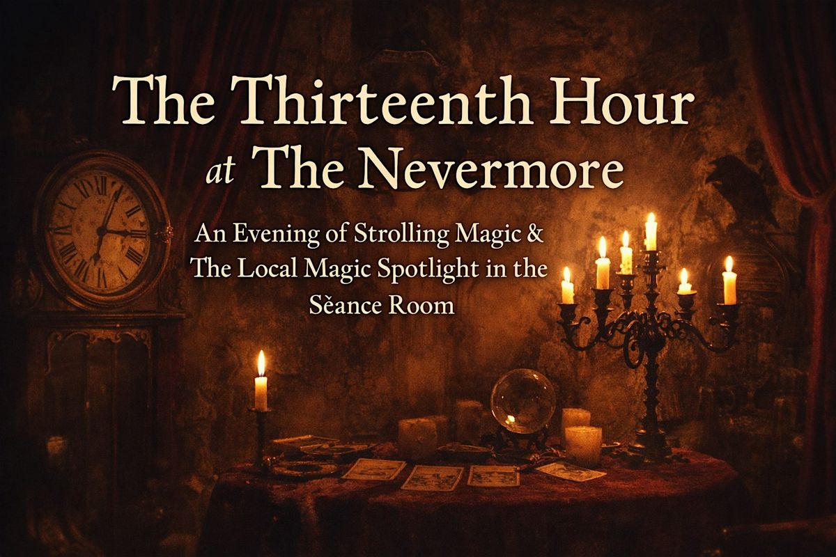 On Friday the 13th, The Nevermore transforms into a wandering, atmospheric evening of close-up magic, dim lights, and hidden moments throughout the house.
