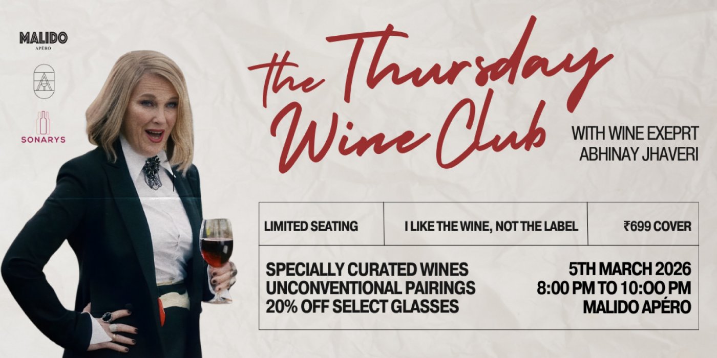 One Thursday of the month, we bring you a handpicked selection of wines available right here in Mumbai, (not mythical unicorn bottles youโll never find again). These are expertly paired with small plates off the Malido menu, and the one man in the room who actually knows what he's talking about: Abhinay Jhaveri.