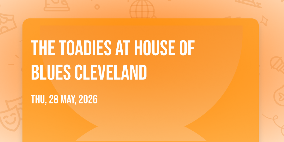 🎉 Welcome to The Toadies at House of Blues Cleveland, where dreams come alive and possibilities are endless! 🏛️ Join us at House of Blues Cleveland in the heart of Cleveland, OH for an event that defies expectations. 📅 On May 28th, 2026 at 08:00 PM, be part of something truly extraordinary as we bring together innovation, entertainment, and pure magic. ✨ Every aspect has been carefully designed to ensure an unforgettable experience for all our guests. Whether you're seeking adventure, inspiration, or simply a break from the ordinary, this event promises to deliver beyond your wildest dreams. 🎊 Prepare for a journey into the extraordinary!