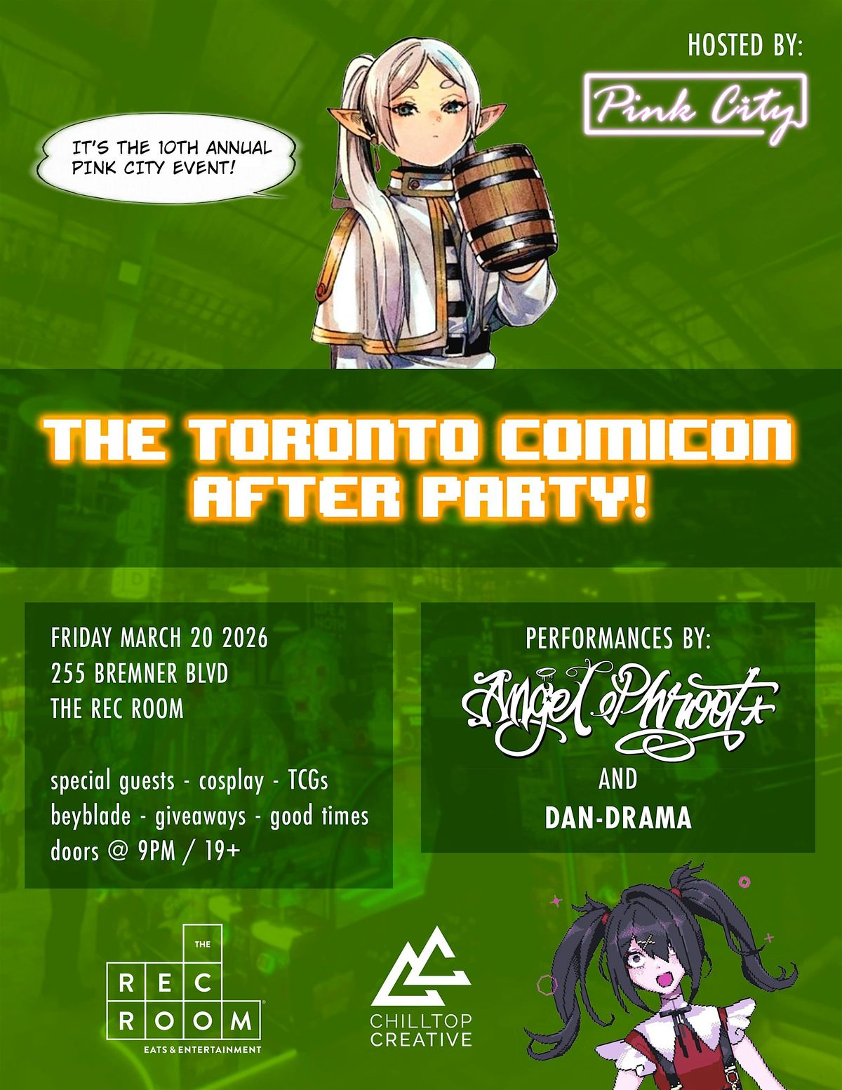 Toronto's longest running Comicon after party is back and BIGGER than ever! Pink City will be hosting the (unofficial) Toronto Comicon after party at The Rec Room on Friday March 20th, right across the street from the con in the back venue, The Hall! So join us for a stellar night with your favourite geeks - it's been 10 epic years of throwing events like this and we'd love to celebrate with you!