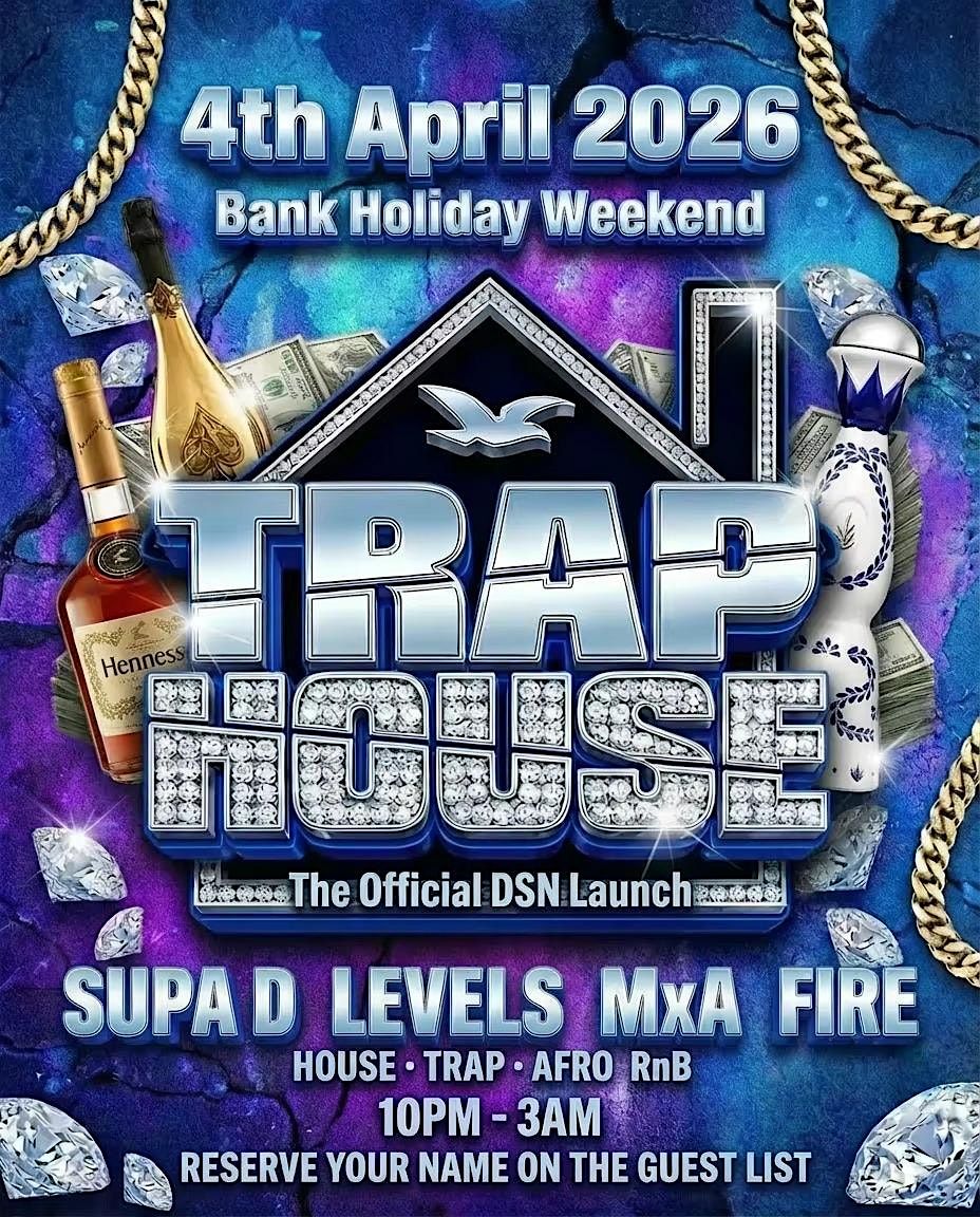 Join us this April Bank Holiday. DSN's premiere event, **The Trap House**, is the sonic fusion of House, Trap, R&B and Dancehall — built for the real underground nightlife crowd.