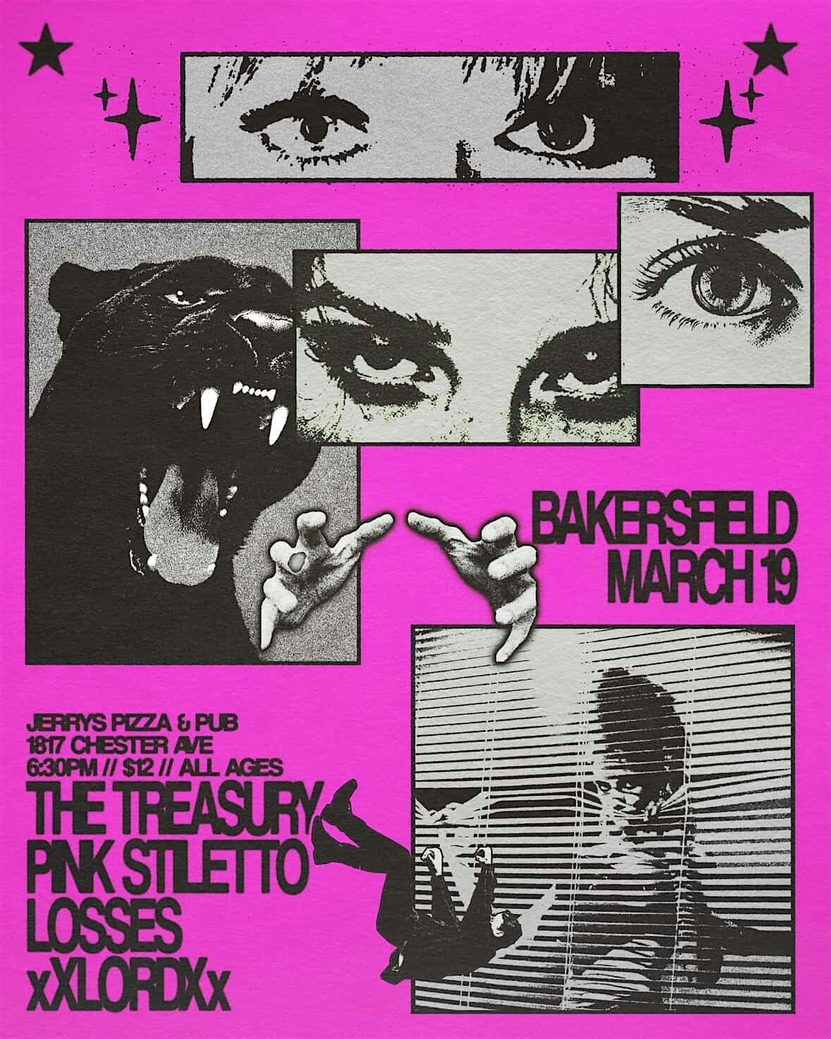 Live music at Jerrys Pizza & Pub with The Treasury, Pink Stiletto, Losses, && xXLordxx . MARCH 19TH DOORS AT 6:30 PM $12 ENTRY FEE. ALL AGES