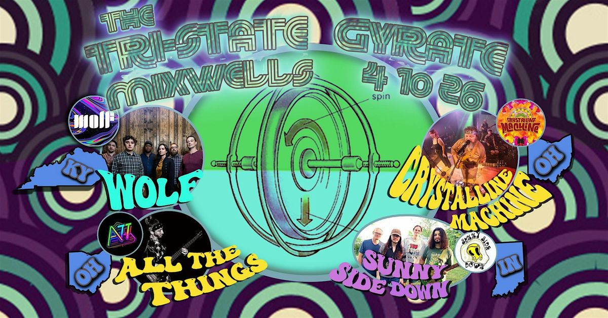 A neon and haze soaked min-festival at Mixwells, featuring 4 dangerously psychedelic funk and soul bands from the tri-state. On tap to launch the cosmic soiree from Indianapolis is Sunny Side Down, a boiling vessel of rhythm and synth with finely crafted frequencies. Up next from Bowling Green, KY is Wolf, a hypercharged flute & fiddle infused jam-rock concoction worthy of national attention. Cincy's own Crystalline Machine provides a long sonic escapade through lost corners of cincy funk, dressed in finest brass. All The Things is a worldclass conglomerate of cincy's finest jazz, funk, and jam artists including Jackson Steiger, Joe Lane, and Will Pope. Haze, Lights, Art, Vendors, Food. as an added bonus The Cosmic Swap clothing exchange will be featured again so bring an item or 12 and take what you please.