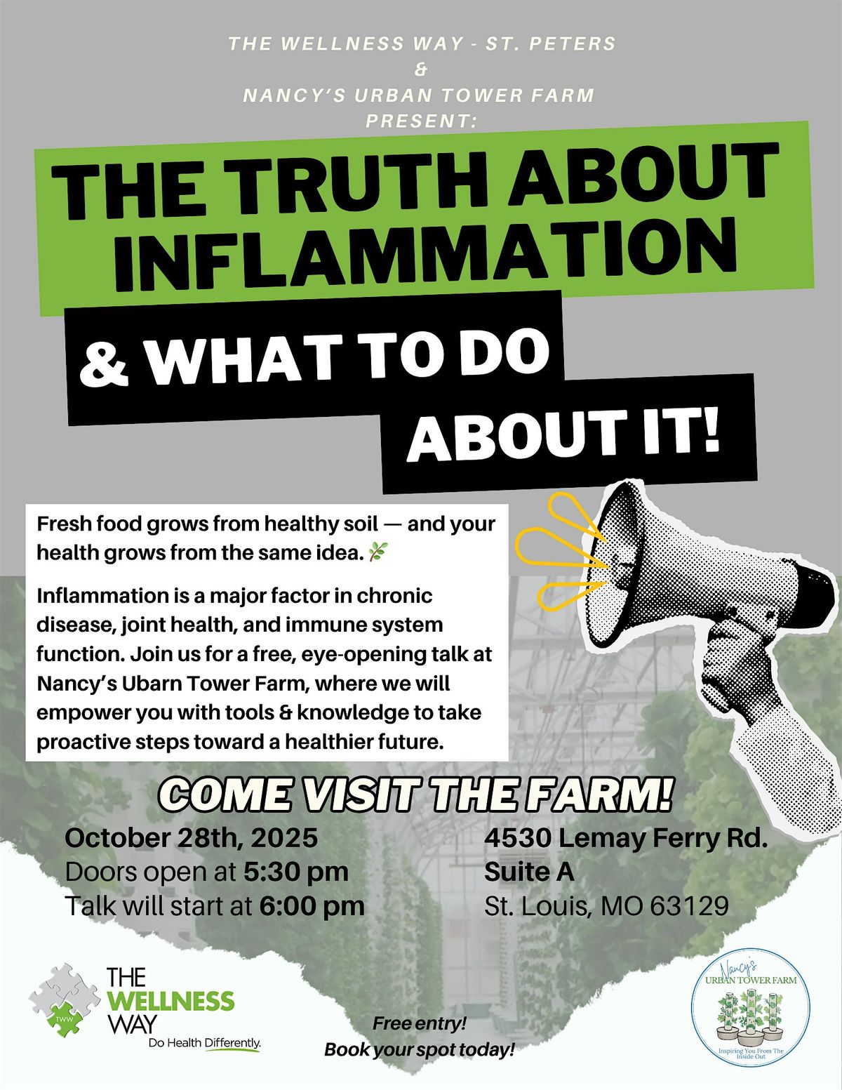 Join Dr. Carlos Ayala, DC, and the team at Nancy's Urban Tower Farm for a free holistic health talk that brings together nature, nutrition, and modern health insights in one powerful evening.