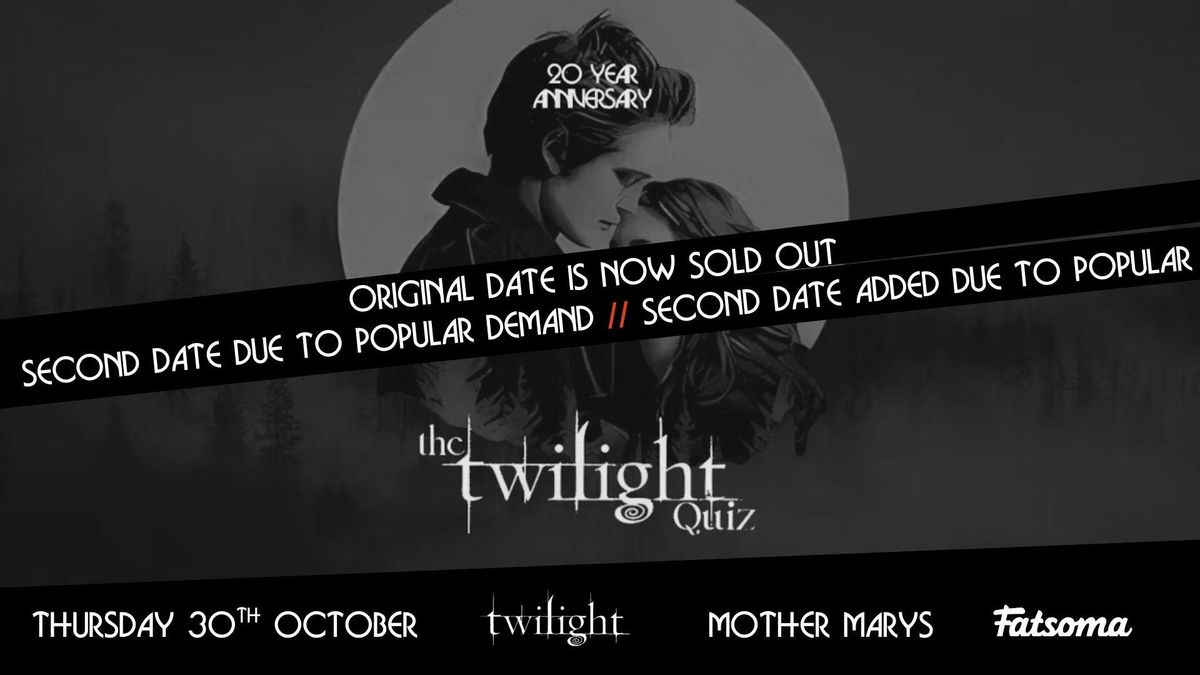 THIS IS THE SECOND DATE ADDED DUE TO POPULAR DEMAND (THE ORIGINAL DATE IS NOW SOLD OUT)It’s been 20 years since Bella Swan moved to Forks, Edward Cullen revealed he sparkles in daylight, and Jacob turned into everyone’s favourite shirtless werewolf. Let’s celebrate two decades of vampires, werewolves, awkward prom moments and glitter with questions that bite.Welcome to TUESDAY NIGHT TRIVIA. The home of pop quiz's in Manchester! Somewhere deep in your heart, you still believe in vampires. Because you know that Team Edward vs Team Jacob isn’t really a choice—it’s destiny. Because you once gasped at “I was unconditionally and irrevocably in love with him…” and you want to relive the cringe, the romance, and the dialogue... OMG Those lines... So - team werewolf or team vampire it's time to put your differences aside and get the gang back together!The ULTIMATE Twilight quiz awaits! PLEASE NOTE THIS WILL BE THE QUIZ REPEATED WITH SOME VARIED ROUNDS. BUYING TICKETS FOR BOTH DATES IS NOT ADVISED (FOR BEST EXPERIENCE - PLEASE ATTEND ONE OR THE OTHER)