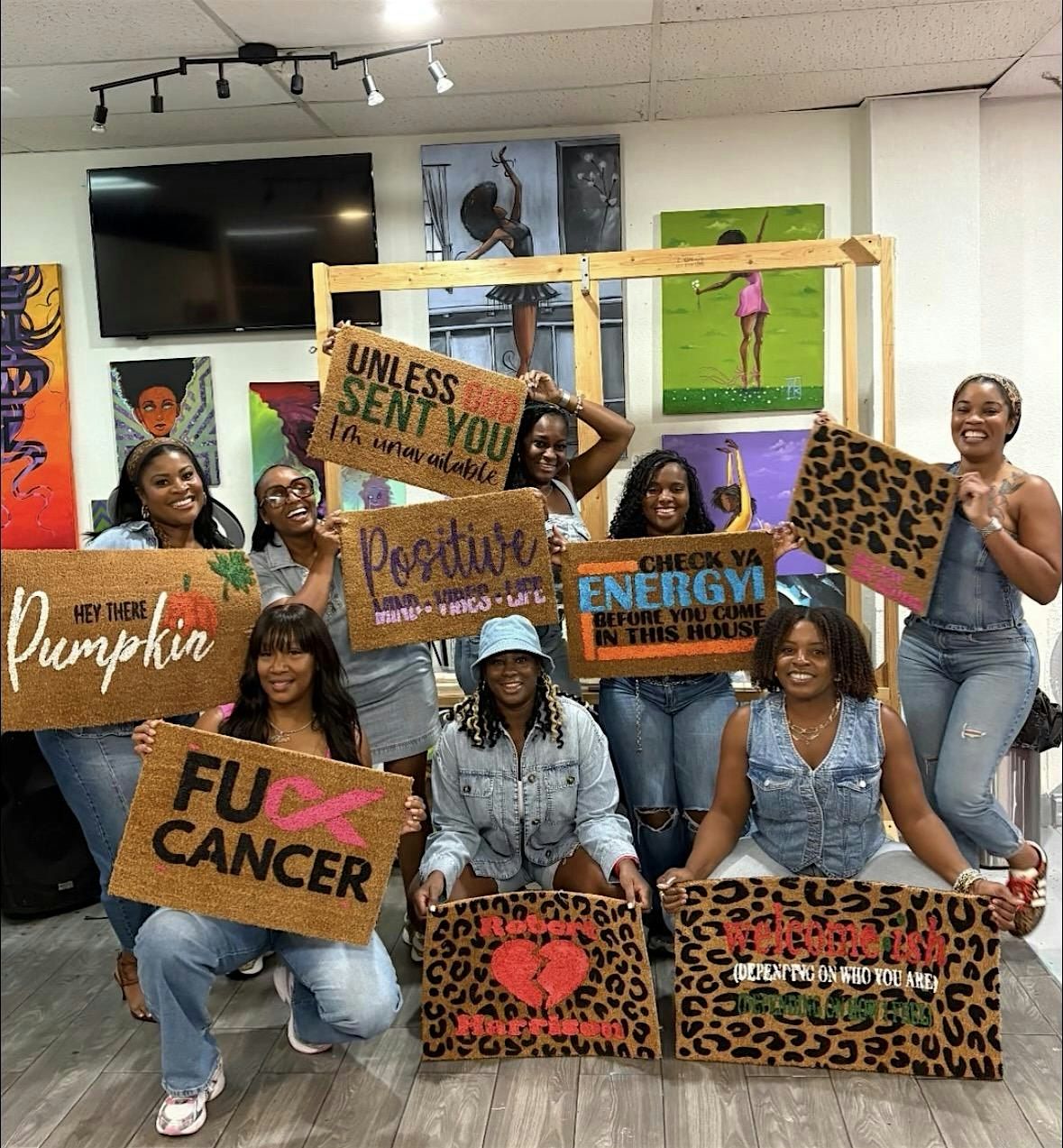 Get ready for a super fun and creative day with Intentional Mats at Lavish Lounge Studios! Join us on for the coolest paint party where you'll design your very own custom doormat! No stress, just good vibes, paint, and laughs. Whether you're a pro or a newbie, this is the perfect way to get crafty and hang out with awesome people. Don’t miss out! And it is BYOB