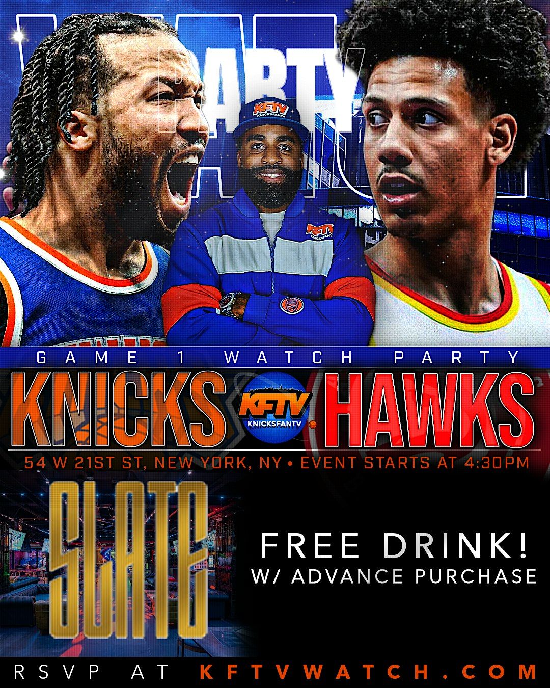 Join CP The Fanchise and Knicks Fan TV at Slate NY (54 W 21st St., NY, NY 10010) for an electric playoff atmosphere as the Knicks begin their postseason run.