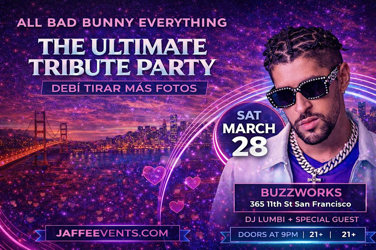 San Francisco, get ready! We’re returning to Buzzworks after our last sold out event,with a full night dedicated to Bad Bunny’s biggest hits, vibes, and energy — from DeBÍ TiRAR MáS FOToS to all the classics you know and love.