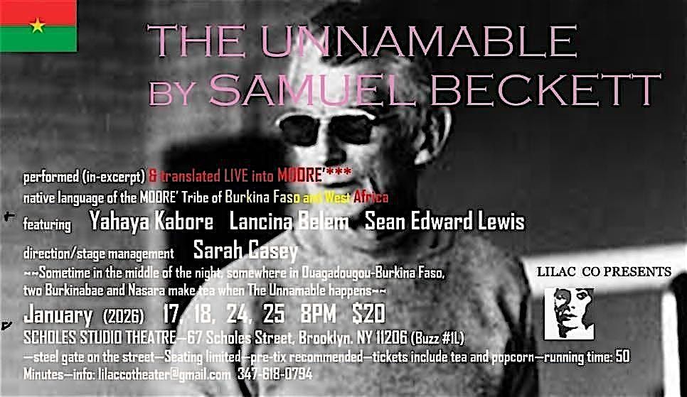 LILAC CO PRESENTS 'THE UNNAMABLE' by SAMUEL BECKETT performed (in-excerpt) by Sean Lewis and translated live into MOORE' by Lancina Belem