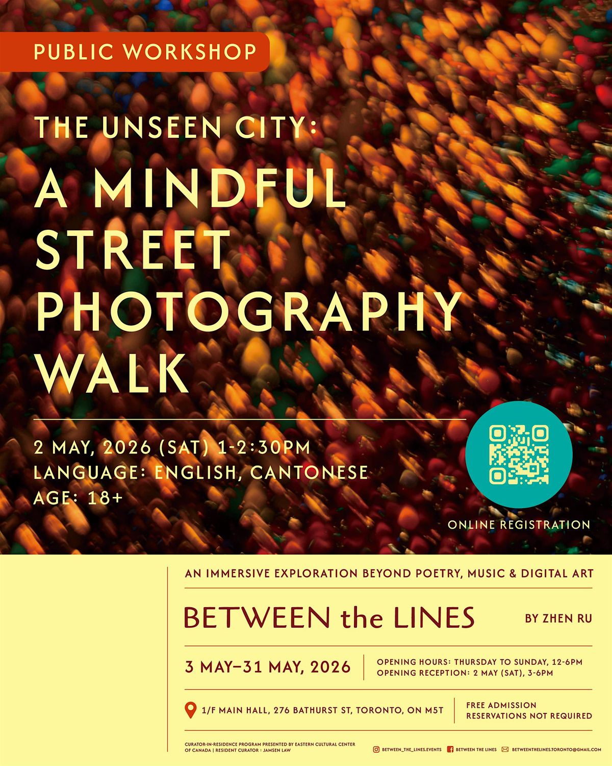 Reconnect with the present as we wander through the heart of downtown Toronto. This workshop invites you to silence the noise and sharpen your focus, transforming routine commutes into an exploration of hidden aesthetics. Slow down, observe the unspoken, and rediscover the city’s beauty—one frame at a time.