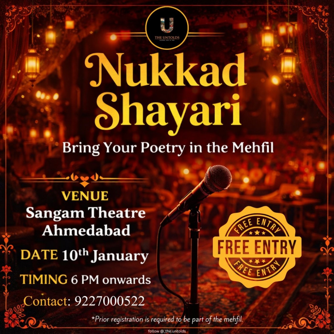 You can share your shayari, poems, nazms, or spoken words — or simply come to listen.