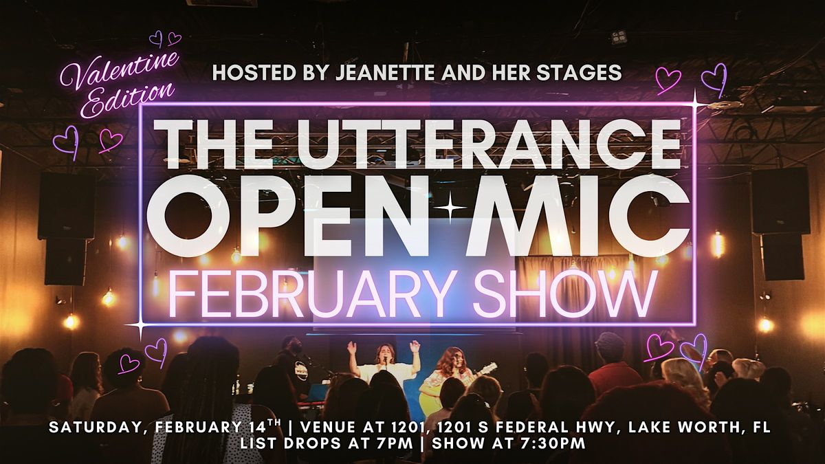 Welcome to our 2026 season of the best all arts open mic in South Florida! This is The Utterance, presented by the Hostess with the Mostest, Jeanette and her Stages!