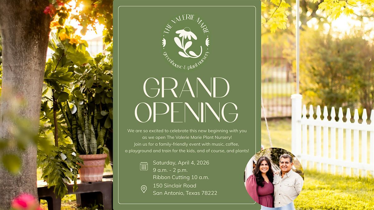 We are so excited to invite you to the Grand Opening of The Valerie Marie Greenhouse & Nursery! Come by in person to check out our beautiful new space filled with lush indoor and outdoor plants that will bring the life and beauty of spring into your home!