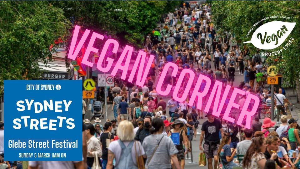 Visit "The Vegan Corner" at the Sydney Streets Glebe Point Road event on Sunday 5 March.Glebe Point Rd will be closed off for the day and there will be stalls, roving entertainment, outdoor dining, buskers and more.
