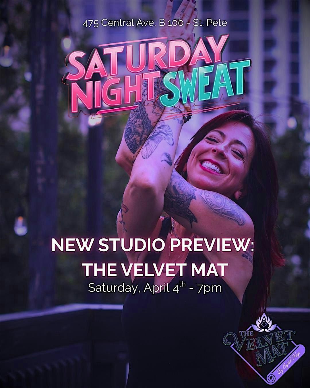 Join us for the very first Saturday Night Sweat inside The Velvet Mat... a high-vibe, music-driven, party yoga experience led by Crystal Kage with live beats by DJ Nugget.