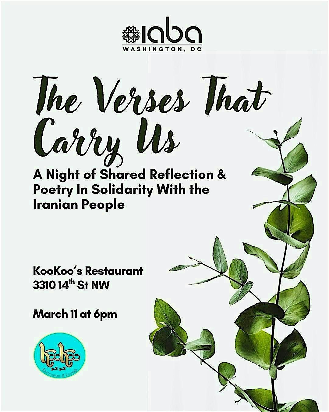 In light of these events, IABA DC recognizes that a “Norooz Celebration” does not reflect the current spirit of our diaspora. Instead, we invite you to attend “The Verses That Carry Us: A Night of Shared Reflection & Poetry In Solidarity With the Iranian People,” a reflective space dedicated to solidarity and shared remembrance with the hopes of a new day for the people of Iran.